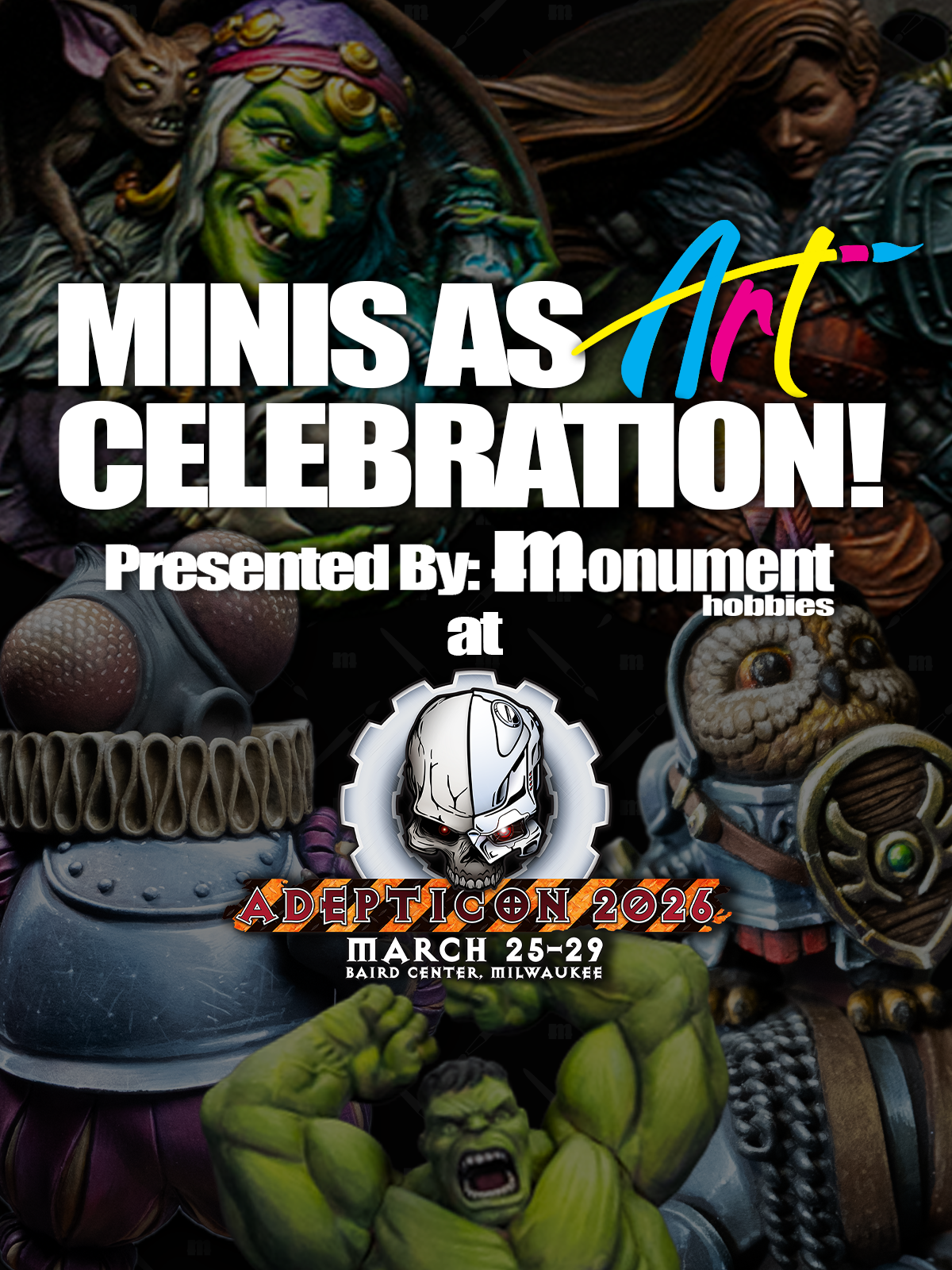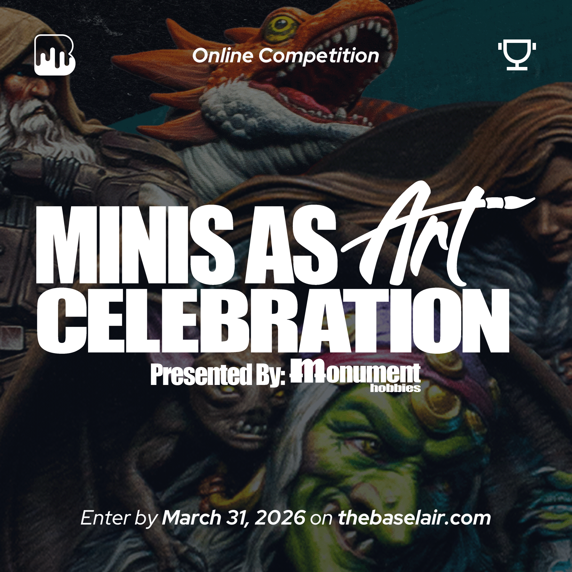Can't make it to AdeptiCon this March? No problem — you can still be part of Monument Hobbies' Minis as Art Celebration here on Baselair! We're bringing the competition online so painters everywhere can participate in this unique open event that celebrates all miniatures as art. Paint a single model and show us your creative vision through your use of color, composition, and storytelling. Join other hobbyists from around the globe in an open competition where you're judged on artistic intent and technical execution!